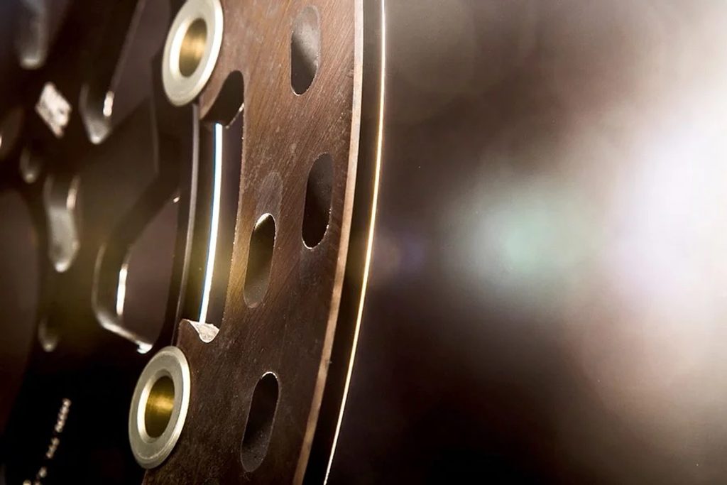 Barva brzdné plochy je výsledkem speciálního tepelného zpracování, které dodává oceli toto charakteristické duhové zbarvení, díky němuž bude váš stroj vynikat mezi ostatními. Chladící otvory nejsou orientovány vertikálně, ale horizontálně a jsou uspořádány ve skupinách po třech v každém směru. Ventilační otvory společně se speciálním tepelným zpracováním zabraňují přehřátí materiálu, které by mohlo vést k deformaci kotouče.