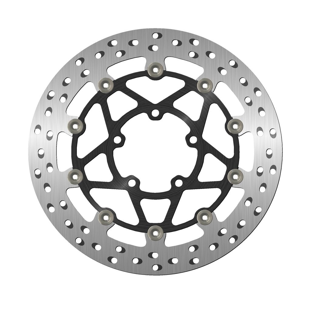 Barva brzdné plochy je výsledkem speciálního tepelného zpracování, které dodává oceli toto charakteristické duhové zbarvení, díky němuž bude váš stroj vynikat mezi ostatními. Chladící otvory nejsou orientovány vertikálně, ale horizontálně a jsou uspořádány ve skupinách po třech v každém směru. Ventilační otvory společně se speciálním tepelným zpracováním zabraňují přehřátí materiálu, které by mohlo vést k deformaci kotouče.