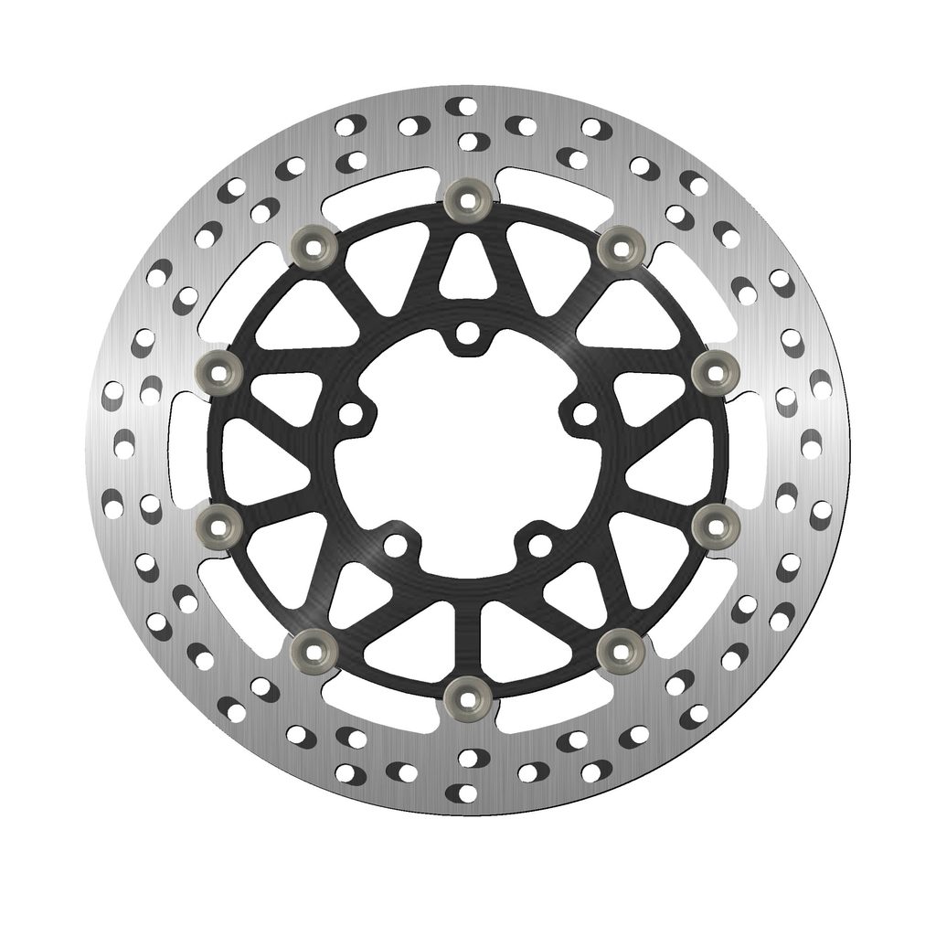 Barva brzdné plochy je výsledkem speciálního tepelného zpracování, které dodává oceli toto charakteristické duhové zbarvení, díky němuž bude váš stroj vynikat mezi ostatními. Chladící otvory nejsou orientovány vertikálně, ale horizontálně a jsou uspořádány ve skupinách po třech v každém směru. Ventilační otvory společně se speciálním tepelným zpracováním zabraňují přehřátí materiálu, které by mohlo vést k deformaci kotouče.
