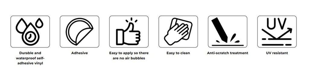 Vinylová fólie je vyrobena speciálně pro každý model motocyklu a je zhotovena ze speciálního materiálu, který eliminuje vzduchové bubliny, což umožňuje dokonalé přilnutí a snadnou instalaci.