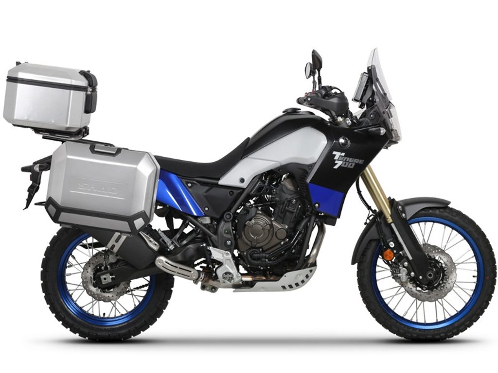 Kompletná sada hliníkových kufrov SHAD TERRA, 37 litrový vrchný kufor, 36/47 litrový bočné kufre, vrátane montážnej sady a platni SHAD YAMAHA Tenere 700 XTZ690