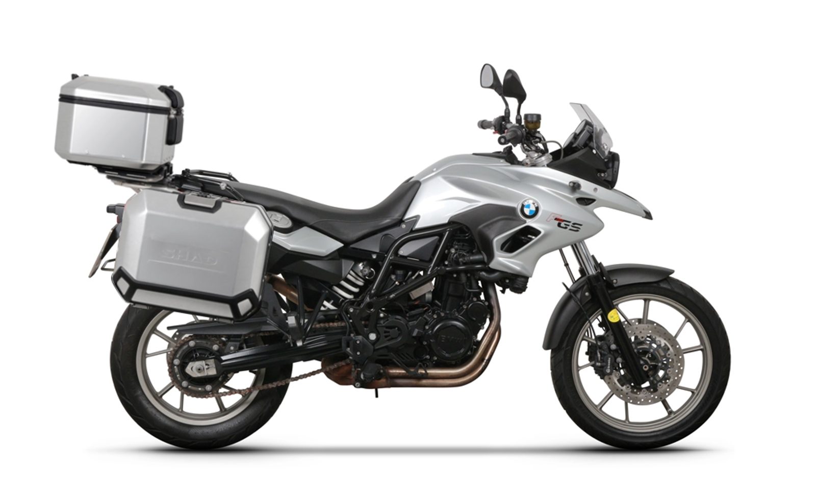 Kompletná sada hliníkových kufrov SHAD TERRA, 55L vrchný kufor + 36L / 47L bočné kufre, vrátane montážnej sady a dosky SHAD BMW F 650 GS / F 700 GS/ F 800 GS (2008 - 2018)