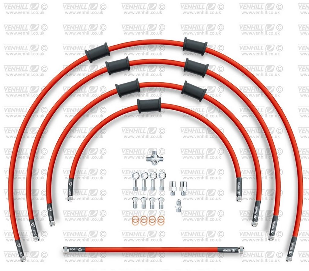 ŠTANDART -predok -sada Venhill POWERHOSEPLUS YAM-10031F-RD (5 hadíc v sade) červené hadice, chrómové koncovky